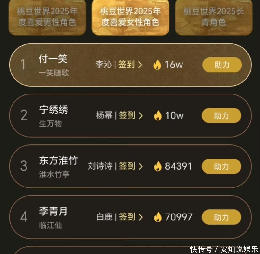这场风波绝非“工作疏忽”那么简单,随着深扒,平台评选机制的漏洞、数据宣传的水分与规则执行的随意性被逐一曝光。数据真实性首遭打脸:平台曾宣称付一笑是“站内仅9个破2亿角色”,以此凸显其含金量,但公开可查的破2亿角色至少11个,邓为饰演的苏易水(2.36亿)、东方淮竹(2.41亿)均远超付一笑的2亿。这种刻意缩小竞争范围的宣传,本质是制造“稀缺感”抬高商业价值。而真正的热度断层第一遭替换,更印证榜单排名与数据无关,反而可能涉及剧集宣发置换、经纪公司博弈或平台独播剧资源倾斜,粉丝氪金不过是资本游戏的“工具人”。
